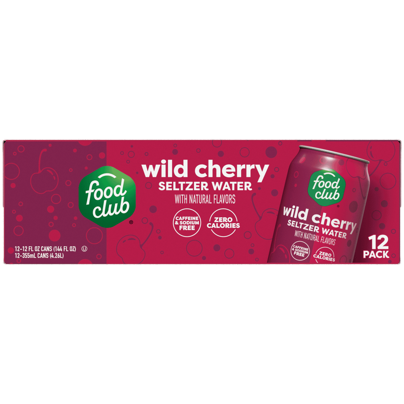 Food Club Wild Cherry Seltzer Water 12 – 12 fl oz Cans